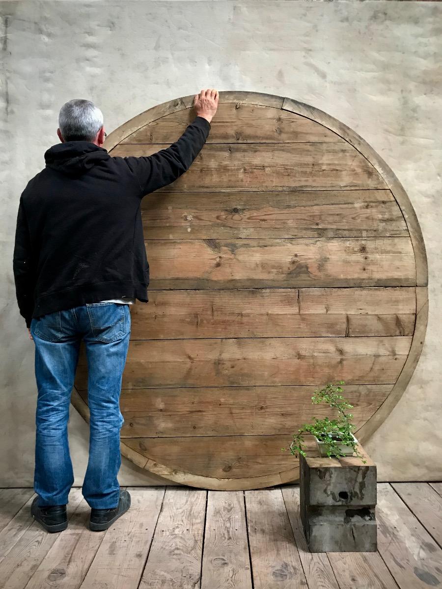 Tall decorative circular wooden pannel made with 2 joined half circular panels...oak and pine...Genuine condition...early 19thC