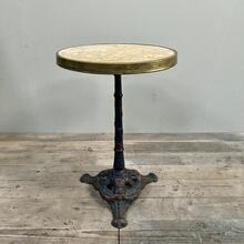 bistro or terrasse table.. Nice cast iron pedestal with its ancient paintings …marble top with a brass band…perfect genuine condition.. France circa 1880