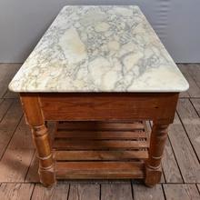 Large kitchen table...pine and marble top...marble restored and fixed on the base (look at the pic) ...very good condition...England circa 1950...