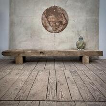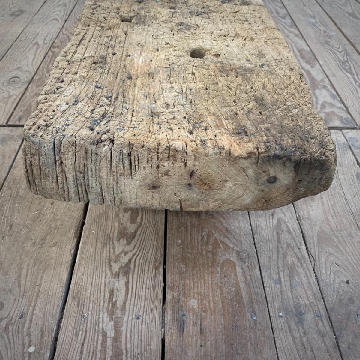 Low elm primitive workbench with a really thick monoxyl top …can be now use as a nice low table or console …top thickness 4.5 inc … France late 19thC/1900
