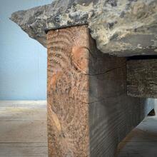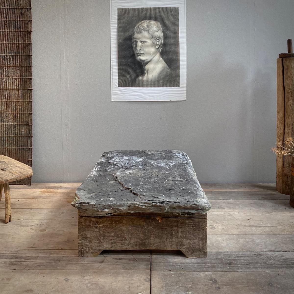 Primitive low table …old pine base and stone top in reclaimed flooring slate with uneven edges…northern France early / mid 19thC