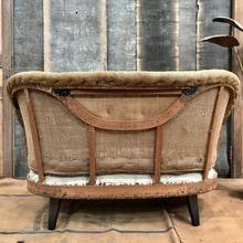 A pleasant scratched Victorian period sofa...concave shaped settee...some chips on the fronted blackened mahogany legs ...good state of use .. France circa 1850