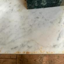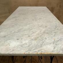 Table de présentation de commerce...piétement fer forgé avec plateau en marbre de Carrare... tes bon état d’origine .. France vers 1900