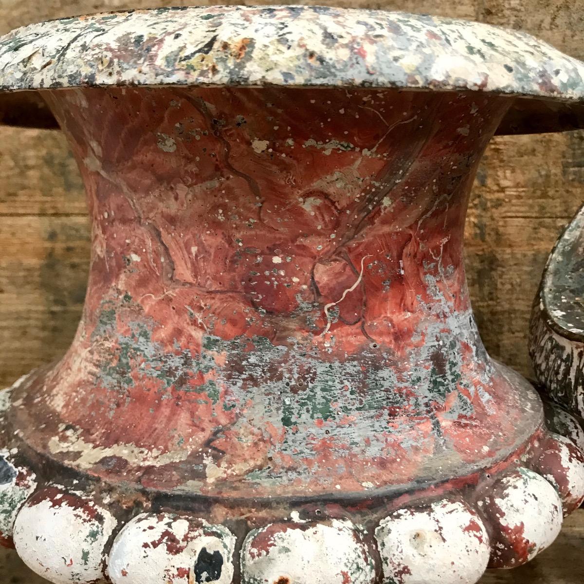 A good pair of enamelled red marble style urns...comes from the well know Alfred Corneau factory..some sparkles and small chips on the enamel but very good condition ... France late 19thC