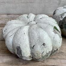 Set of 3 concrete life-size pumpkins with their historical crusty paint ..diam for the smaller is 10 inc.. Very good weathered condition .. France circa 1960