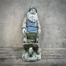 Gnome and his wheelbarrow with it’s historical crusty paint…plaster and Bristol…good genuine weathered condition…France 60’ s….